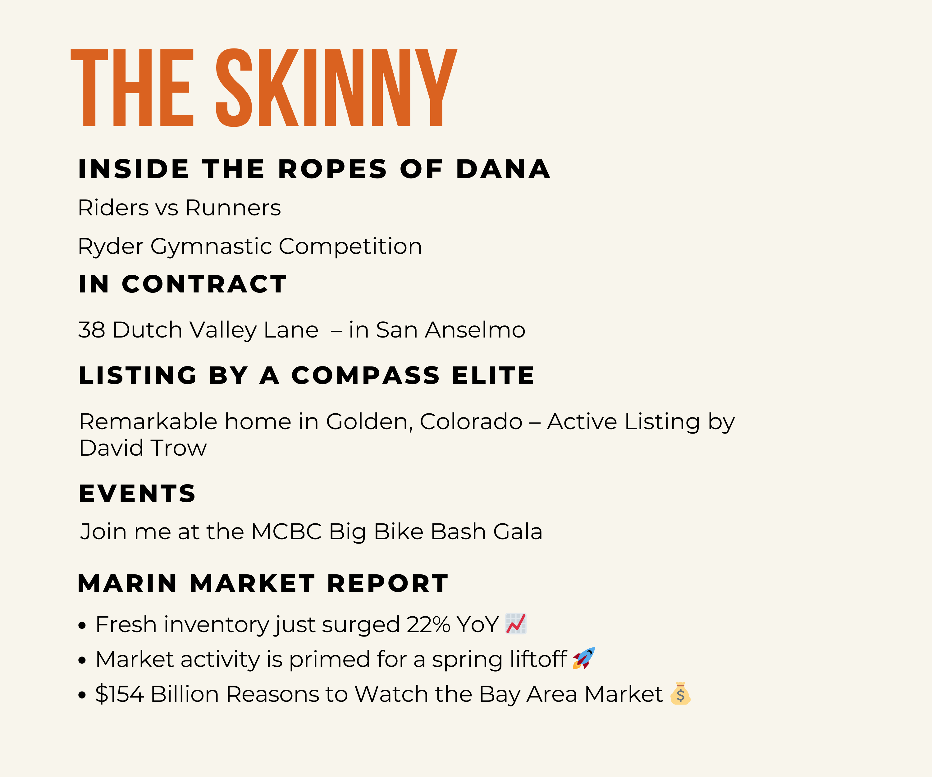 Mt. Tam Challenge & Ryder’s First Gymnastics Competition | Client Win in San Anselmo | Surging Marin Market  + MCBC Big Bike Bash